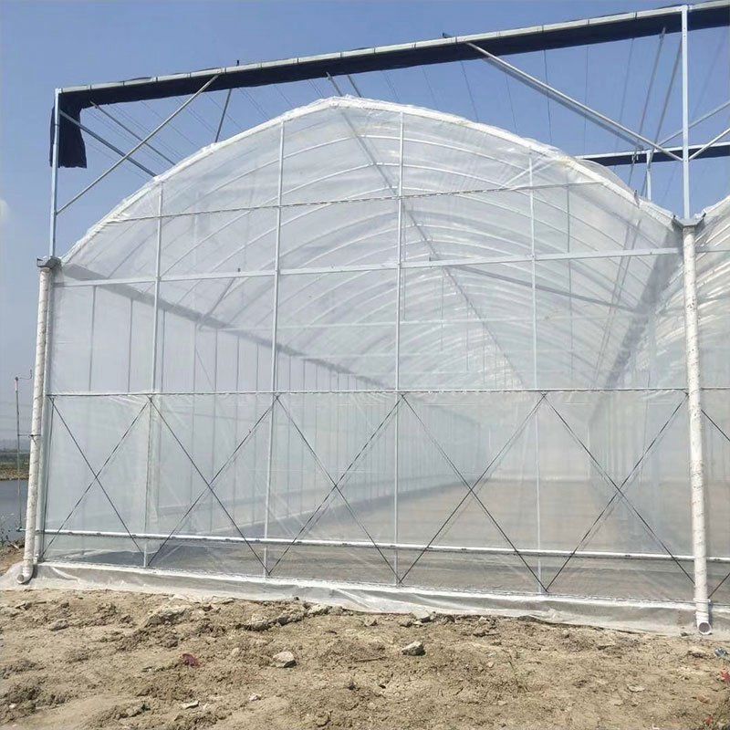 外遮陽(yáng)系統(tǒng)是使用不透明或低透射率材料遮擋陽(yáng)光,防止過(guò)多的太陽(yáng)輻射進(jìn)入溫室從而達(dá)到降低溫室室內(nèi)溫度的目的。由于遮陽(yáng)材料的遮光率和安裝方法的不同,溫室溫度通??山档?℃至10℃。遮陽(yáng)方法包括室內(nèi)遮陽(yáng)和室外遮陽(yáng)。室內(nèi)遮陽(yáng)系統(tǒng)是用于在溫室骨架中拉動(dòng)金屬線(xiàn)或塑料網(wǎng)線(xiàn)并將遮陽(yáng)網(wǎng)安裝在支撐膜線(xiàn)上的支撐系統(tǒng)。通常使用電控或手動(dòng)控制。室外遮陽(yáng)系統(tǒng)在溫室骨架外設(shè)有遮陽(yáng)框架,遮陽(yáng)網(wǎng)安裝在骨架上。遮陽(yáng)網(wǎng)由電機(jī)和驅(qū)動(dòng)系統(tǒng)鏈接,以自由地打開(kāi)和關(guān)閉。遮陽(yáng)網(wǎng)的室外安裝具有良好的遮陽(yáng)效果,可以直接阻擋溫室外的太陽(yáng)能,并且可以根據(jù)實(shí)際需求使用各種類(lèi)型的遮陽(yáng)網(wǎng)。外遮陽(yáng)根據(jù)溫室建筑材料和覆蓋材料的不同又分為玻璃溫室、陽(yáng)光板溫室和薄膜溫室。溫室的骨架規(guī)格、跨度和開(kāi)間決定了外遮陽(yáng)的安裝方式。4米、8米等常規(guī)尺寸可以直接根據(jù)圖紙進(jìn)行加工安裝,而一些非常規(guī)的尺寸則需要根據(jù)現(xiàn)場(chǎng)的實(shí)際情況進(jìn)行設(shè)計(jì)。玻璃溫室和陽(yáng)光板溫室一般尺寸都相對(duì)規(guī)范,而薄膜溫室的尺寸根據(jù)跨度的大小不一,需要進(jìn)行現(xiàn)場(chǎng)考察,跨度太大的一般不建議安裝外遮陽(yáng)系統(tǒng),穩(wěn)定性和抗風(fēng)能力都不理想。